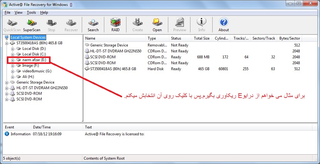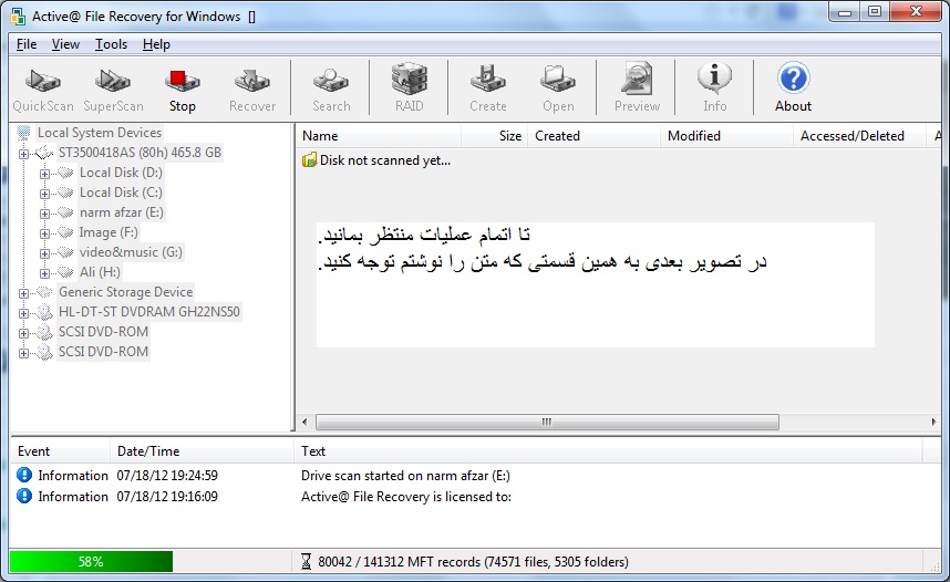 شاید تا به حال برای شماهم اتفاق افتاده باشه که اطلاعاتی را به هر دلیلی از دست داده باشید و نیاز به بر گرداندن آن داشته باشید.شاید این کار غیر ممکن به نظر برسد که بتوان این کار را کردن ولی باید بگویم که این کار ممکن است.در این مطلب نرم افزار Active@ File Recovery v7.5.1رابرای دانلود به همراه آموزش ریکاوری گرفتن از هارد دیسک و ریکاوری گرفتن از مموری کارت ها(حافظه موبایل) و فلش مموری را آموزش خواهم داد.
